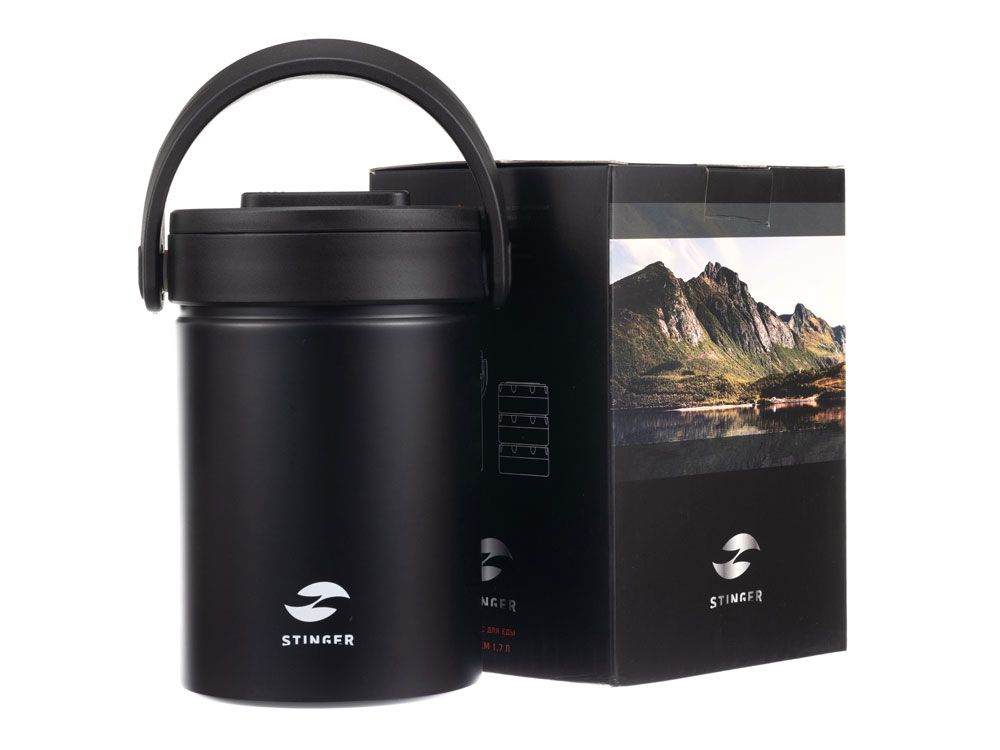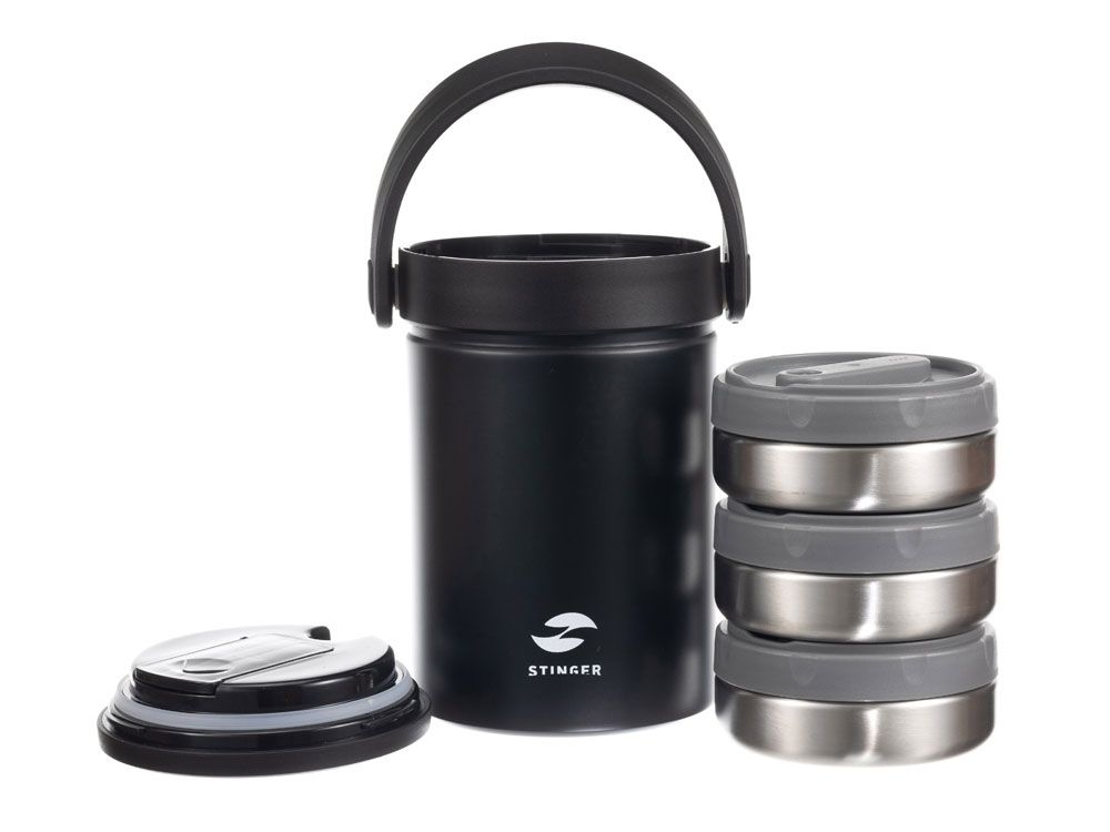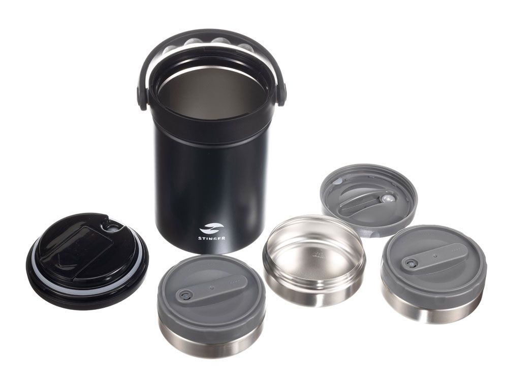 Термос ланч-бокс Stinger, 1,7 л, широкий, сталь, чёрный, три контейнера, 16,1 x 14,9 x 21,5, 441203