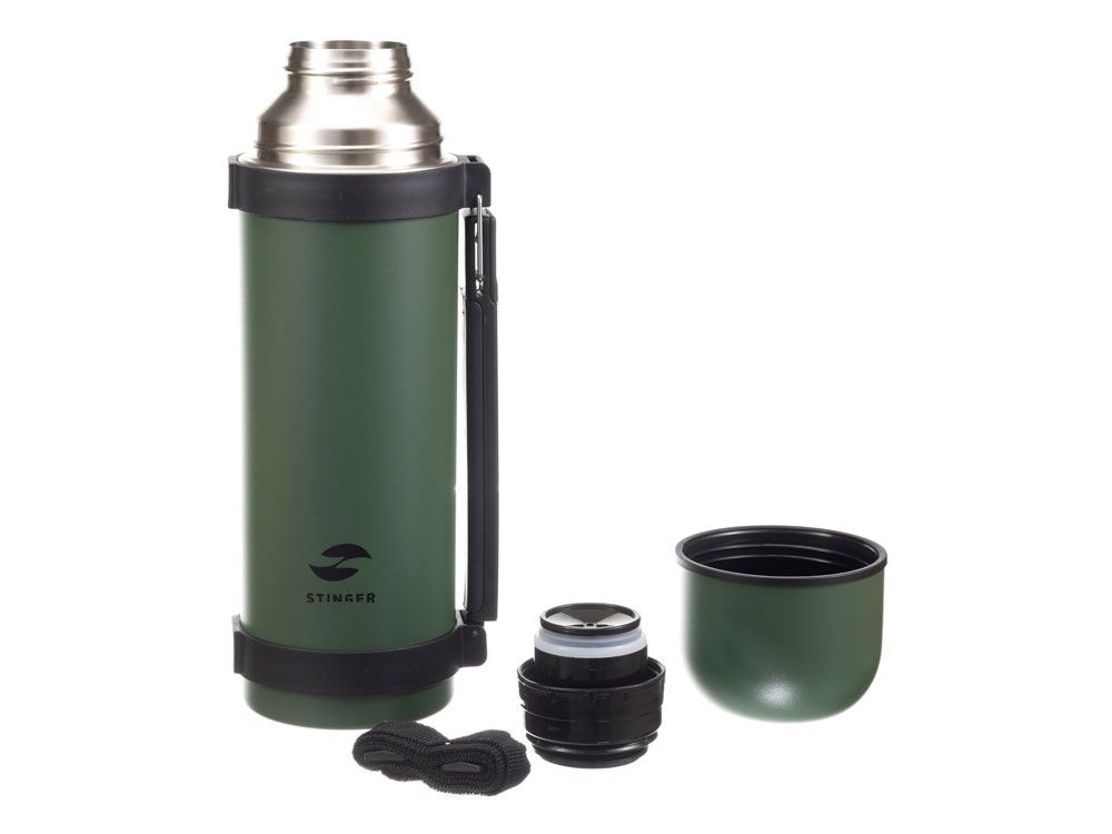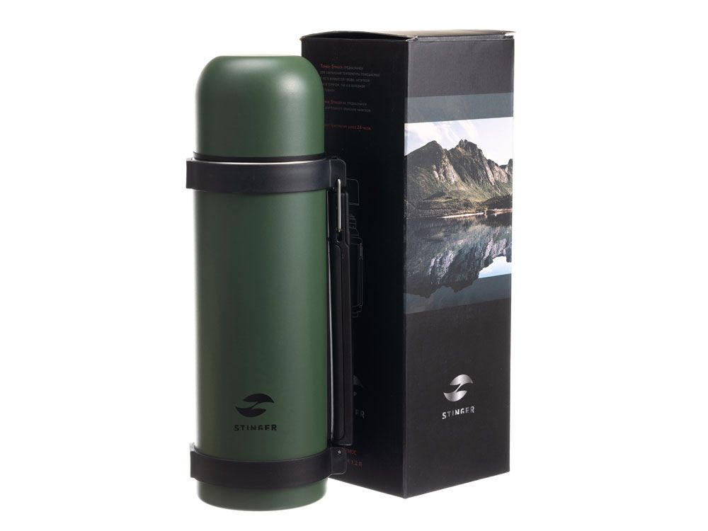 Термос Stinger, 1,2 л, широкий с ручкой, нержавеющая сталь, зелёный, 12,4 х 10,2 х 31,8 см, 441204