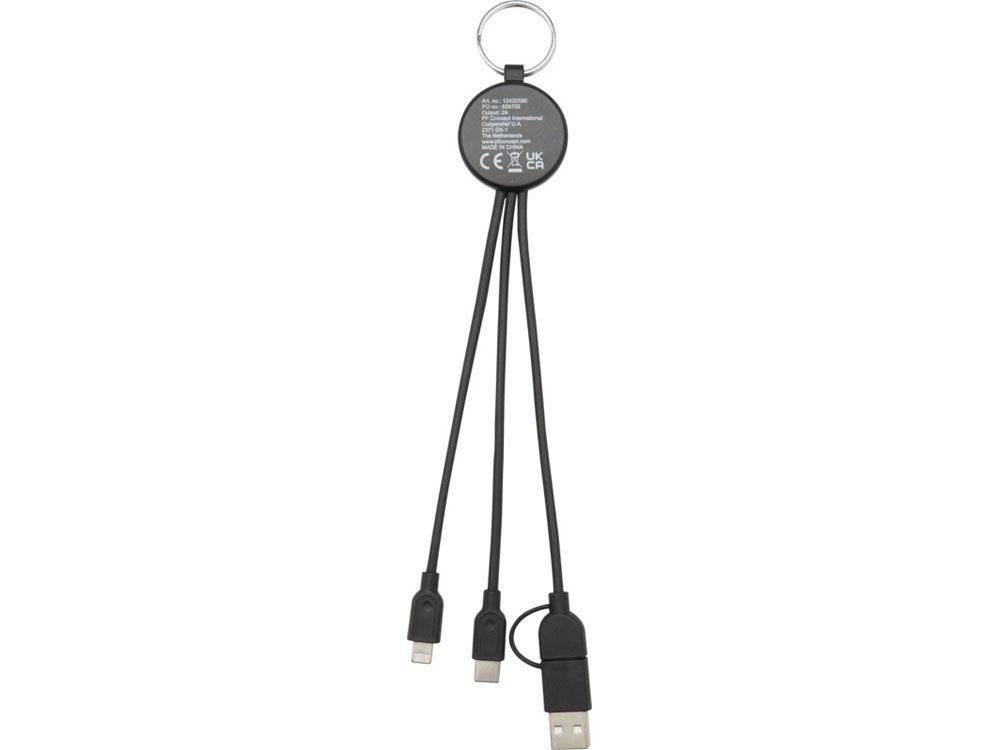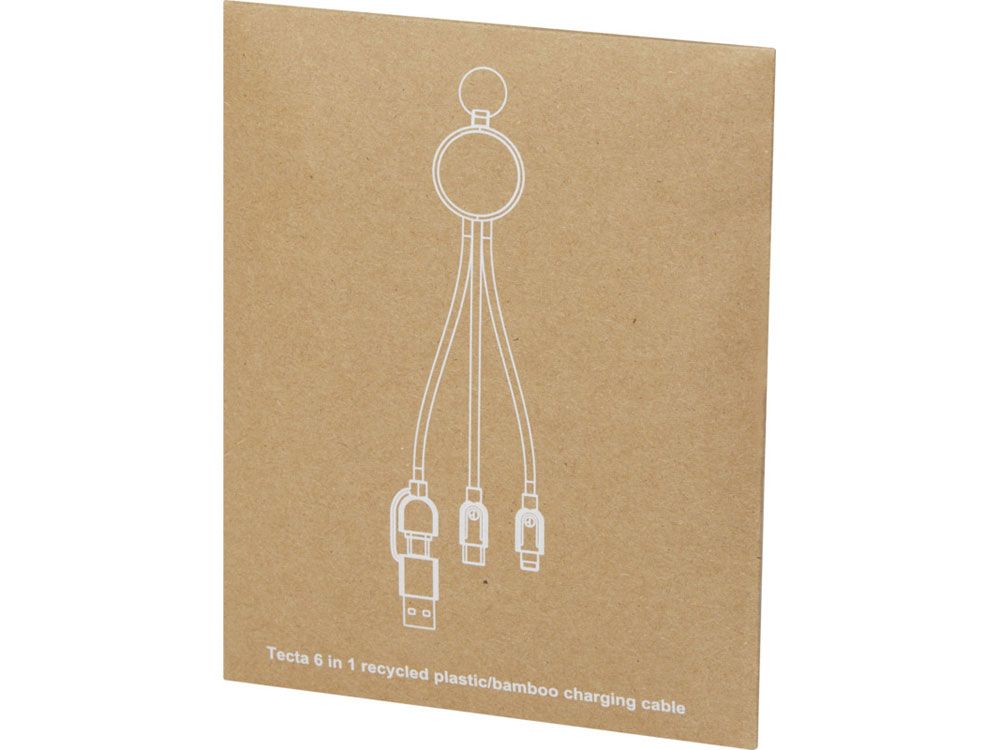 Кабель для зарядки Tecta 6 в 1 из переработанного пластика/бамбука с брелком, сплошной черный, 12432590