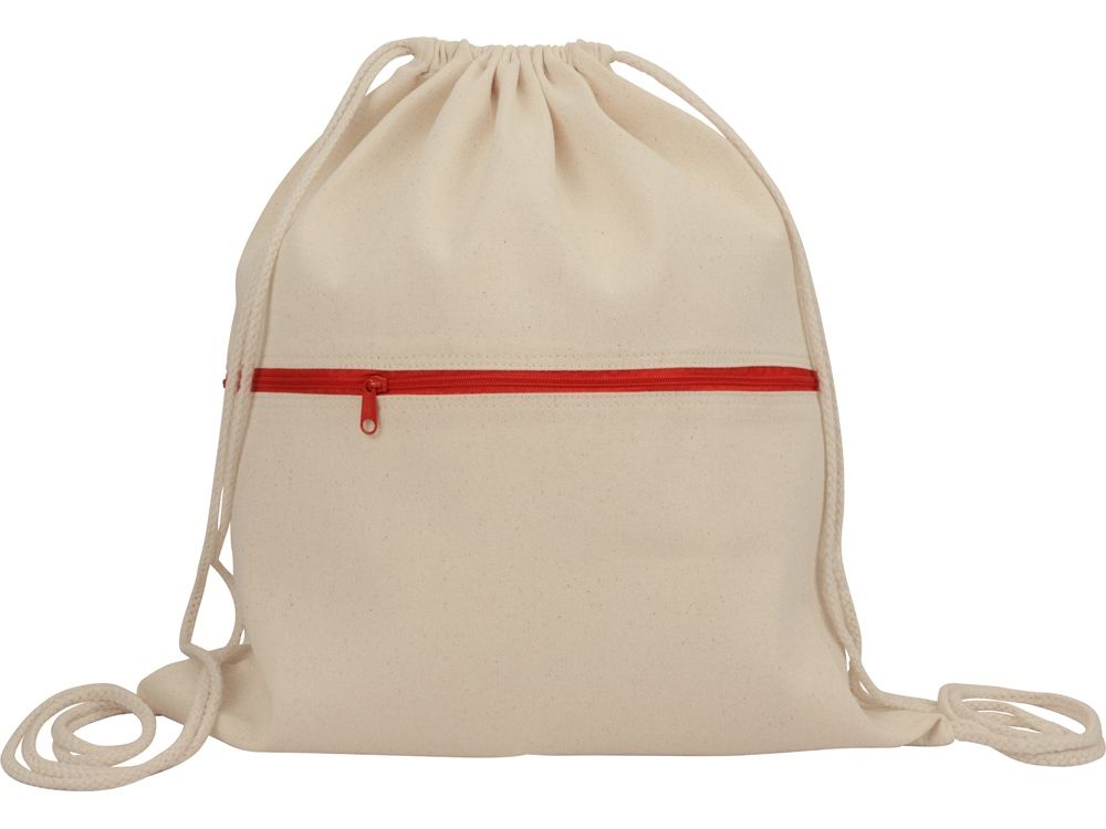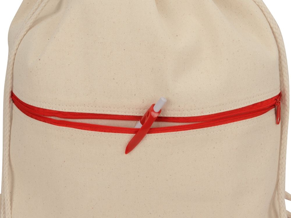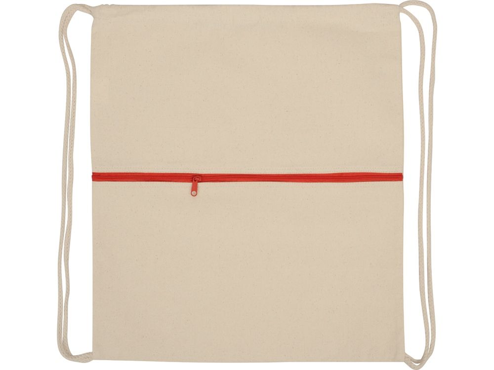 Рюкзак-мешок хлопковый Lark с цветной молнией, натуральный/красный, 955111