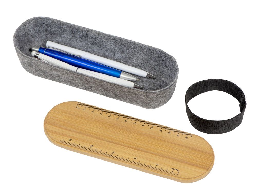Пенал с линейкой и подставкой для телефона из бамбука Haruki, серый, 369700