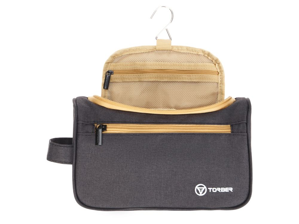 Несессер TORBER, дорожный, чёрный/бежевый, полиэстер 300D, 24 х 16 х 9 см, 73484