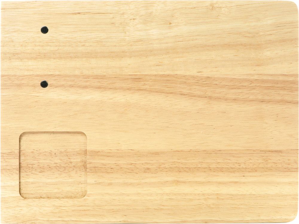 Блок с принадлежностями для сыра и вина легко можно снять при необходимости, ведь он крепится к доске при помощи магнитов. Ножи фиксируются к широкой грани этого блока при помощи магнитов, штопор — на узкой, ему отведена отдельная вырубленная ниша, что обеспечивает быстрый и удобный доступ к этим инструментам и предотвращает ржавение благодаря конструкции держателей. Для кольца и пробки предусмотрены вырубленные по форме каждого из приспособлений пазы, причем кольцо тоже имеет фиксирующий магнит.