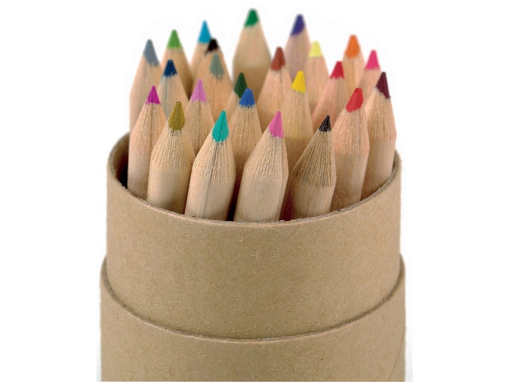 24 цветных карандаша, резинка и точилка в картонной цилиндрической коробке |