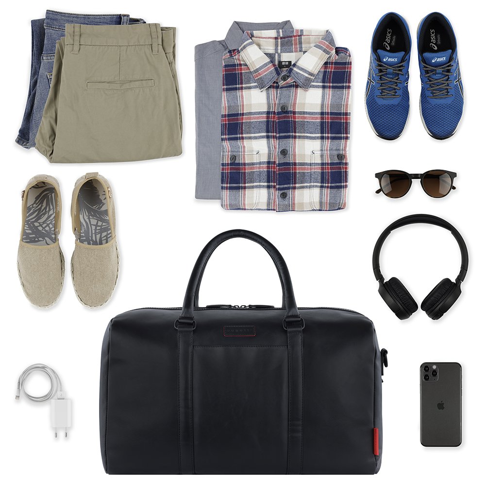 Сумка дорожная BUGATTI КЛАРК | CLARK, чёрная, воловья кожа/полиэстер, 45х20х27,5 см, 24 л, 49235601