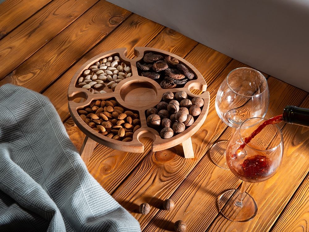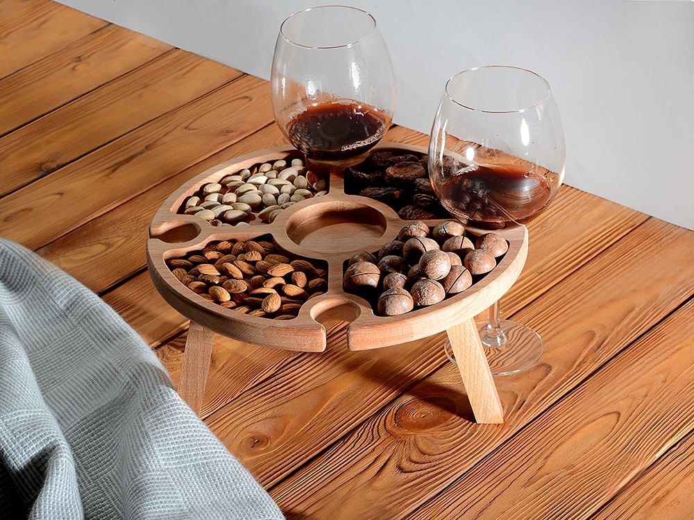 Помимо функциональности столика не можем не отметить и его эстетичность, которая позволяет изящно преподнести вино и снеки к нему.