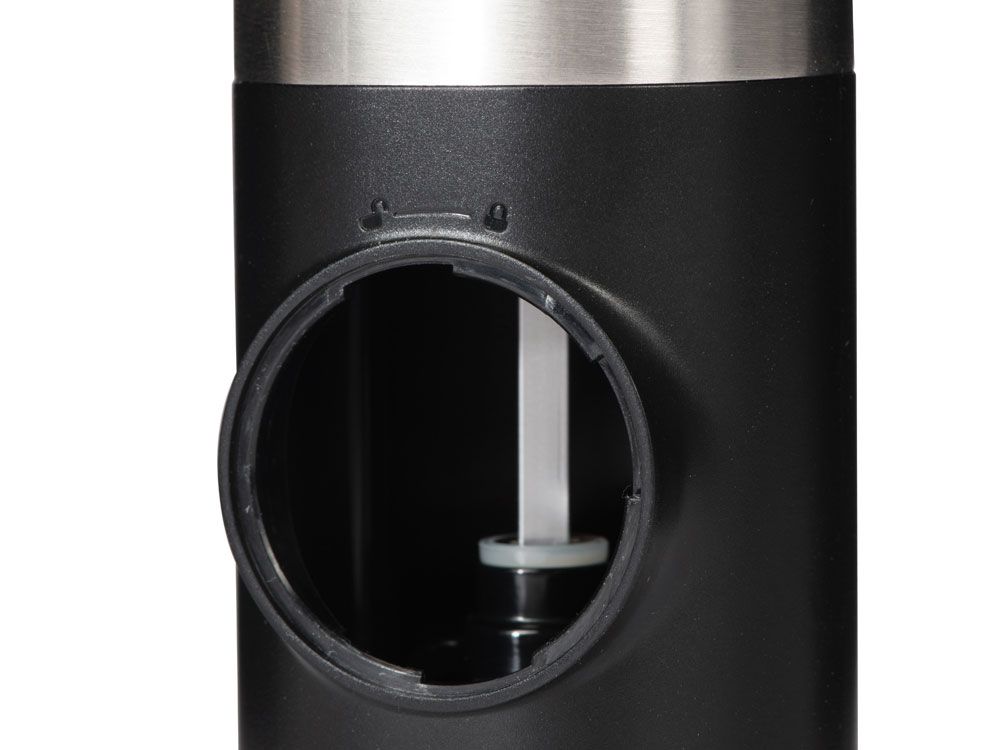 Grind позволяет удобно регулировать степень помола: на нижней части мельницы есть рычаг, позволяющий выбрать один из пяти возможных вариантов — от грубого до мелкого. Прозрачная крышка на передней части предназначена для насыпания специй, а также через неё вы всегда будете видеть содержимое и сколько его осталось.