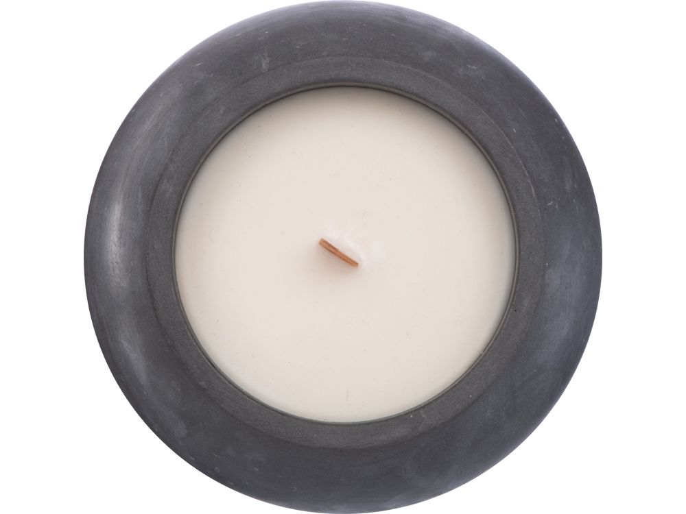 Круглая свечка в бетоне, фитиль дерево, oud wood, 21024