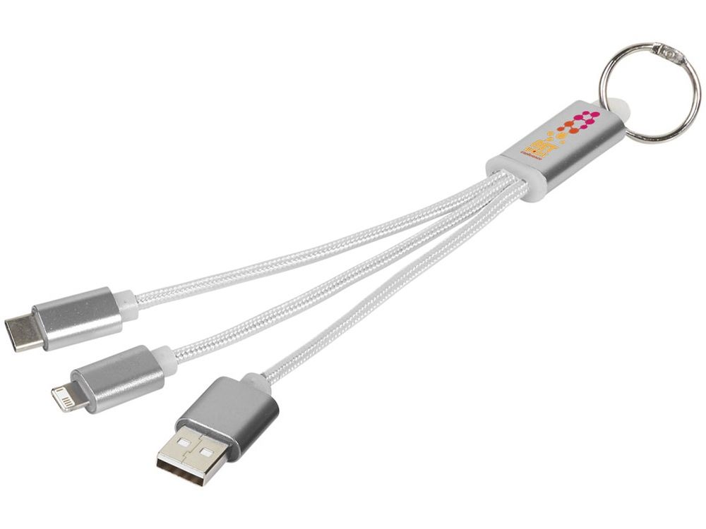 Кабель для зарядки Metal 3-в-1 с брелоком, серый, 13496101