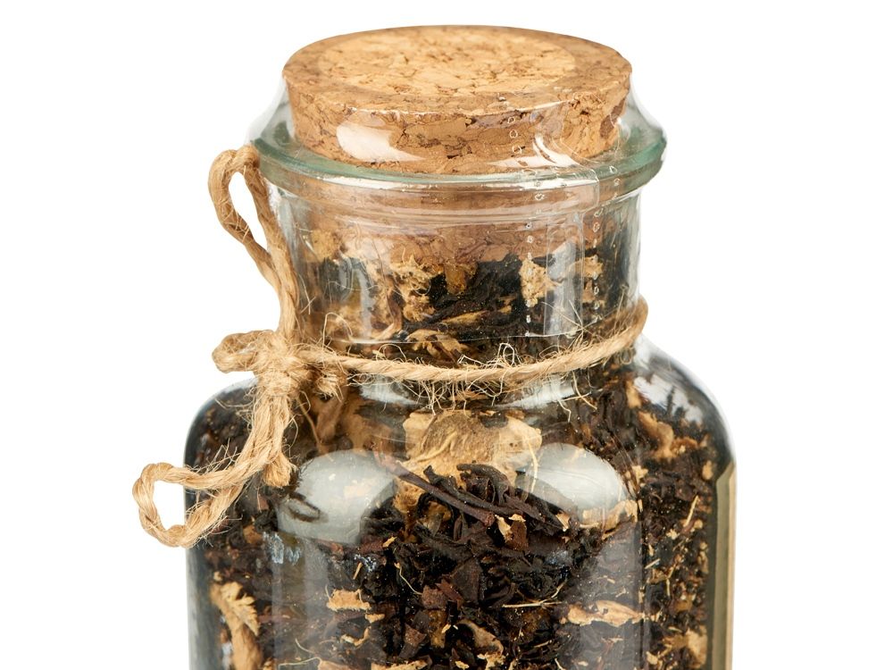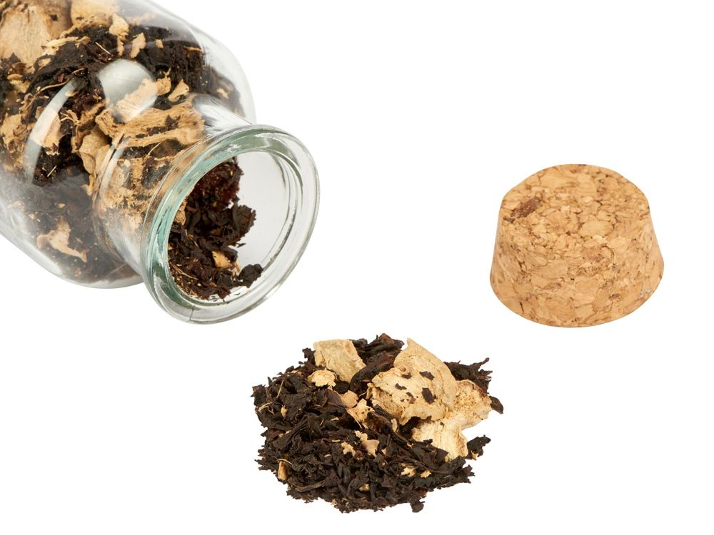 чай черный байховый крупнолистовой, кусочки имбиря, сок имбиря, кусочки карамели, ароматизаторы натуральные Грецкий орех и Ванильно-сливочный |