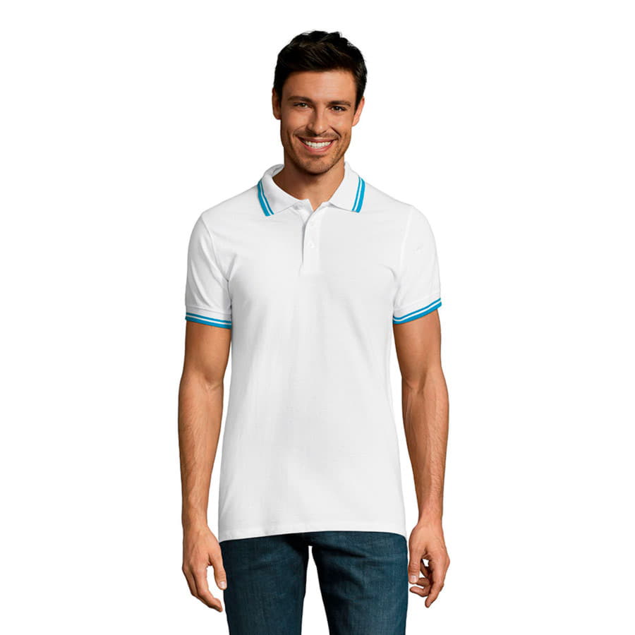 Поло "Pasadena Men" белый, голубой__XL, 100% х/б, 200г/м2, 700577.930/XL