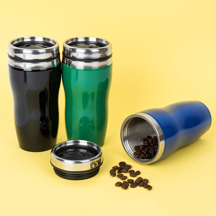 Термокружка, с двойными стенками из стали 304 и крышкой с силиконовым уплотнителем.