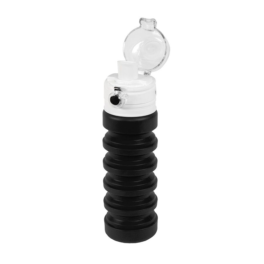 Бутылка для воды складная с карабином SPRING; черная, 550/250 мл, силикон, 29800/35