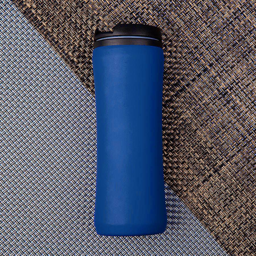 Термокружка FLOCK с пластиковой внутренней колбой и внешней металлической с покрытием soft-touch сохраняет напиток горячим до 3х часов.