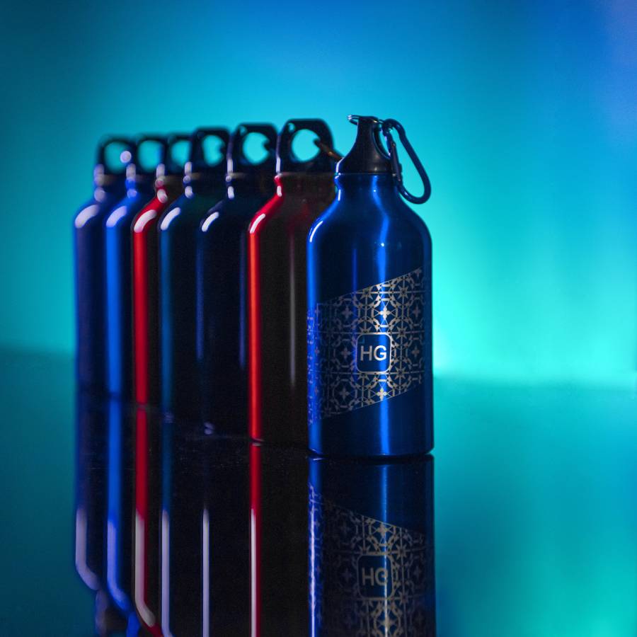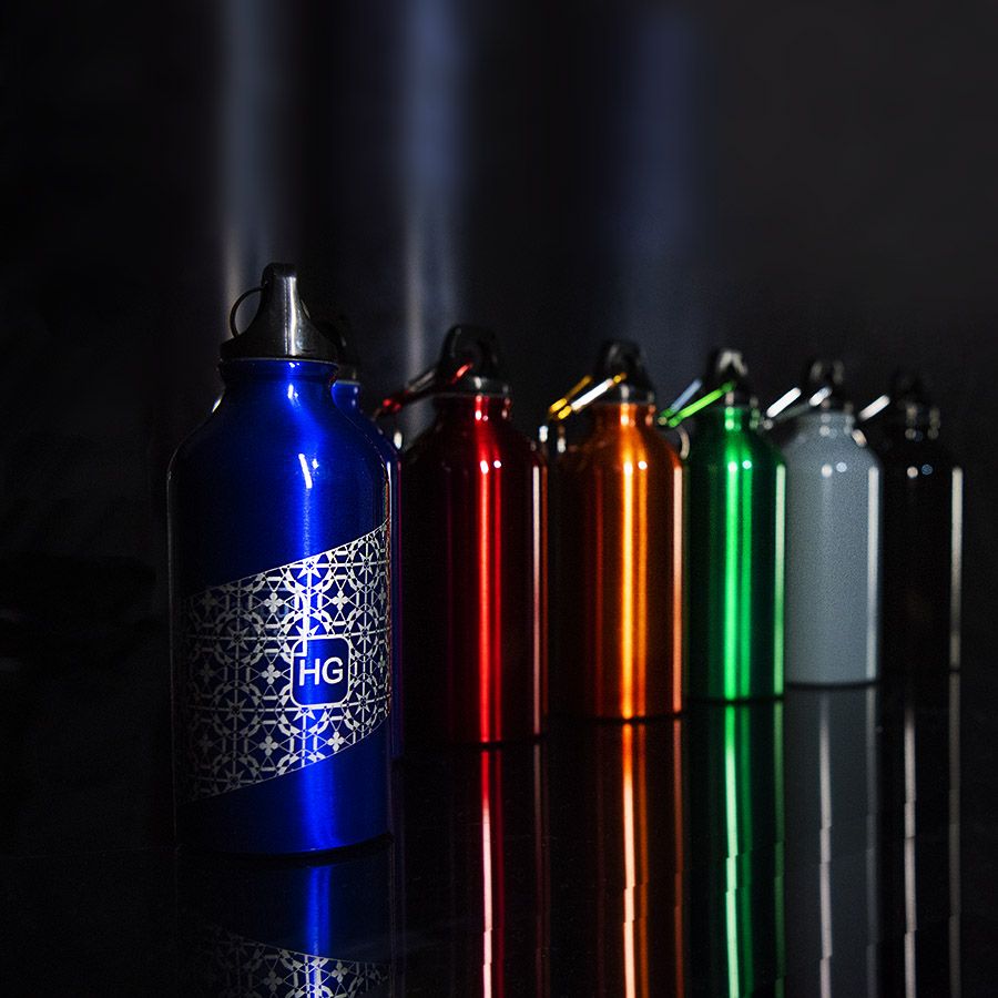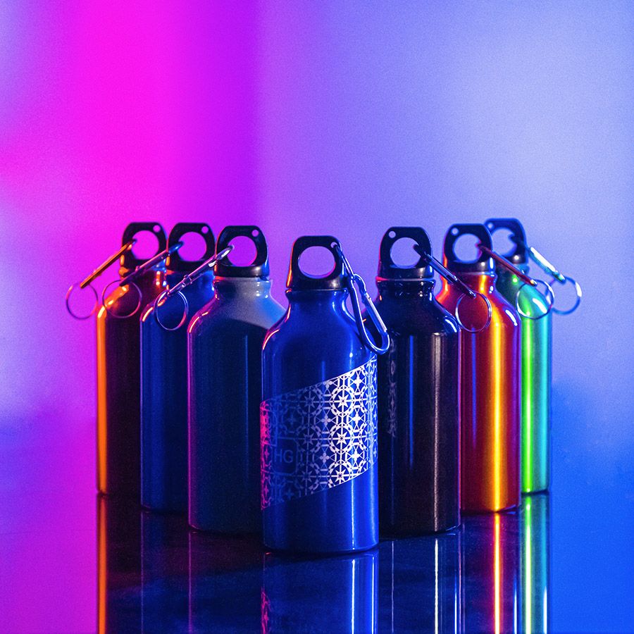 Цветная алюминиевая бутылка с удобной навинчивающейся пробкой и карабином для крепления к рюкзаку, сумке или одежде.