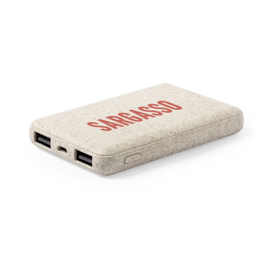 Материал этого небольшого, но довольно ёмкого пауэрбанка - смесь из пластика и переработанных колосьев пшеницы. Он более экологичен, чем обычный пластик.