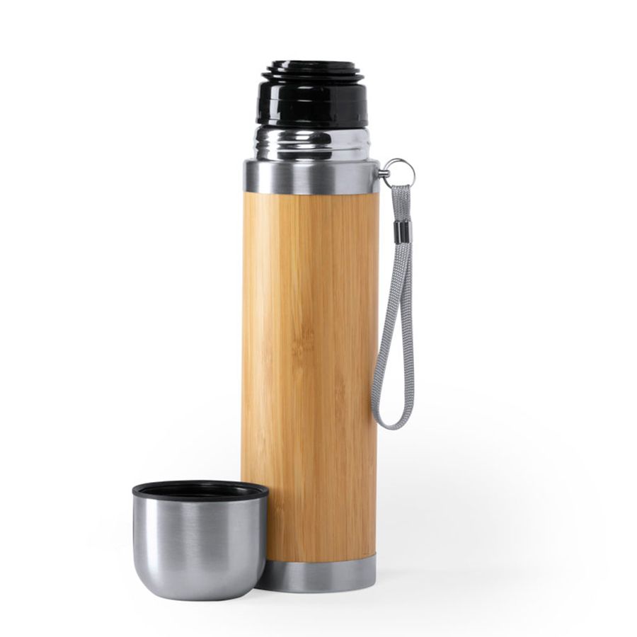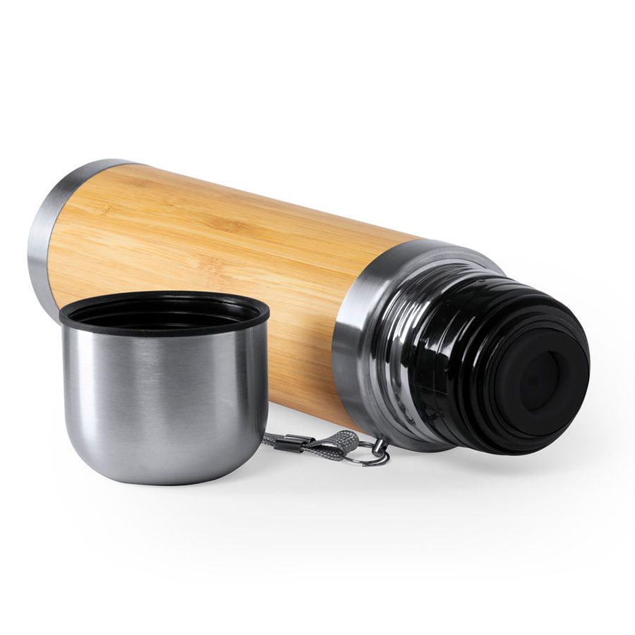 Термоc TIAKY объемом 420 мл в сочетании материалов из бамбука и нержавеющей стали. Не содержит бисфенола А, двойные стенки для лучшего и длительного сохранения температуры жидкости. Винтовой механизм закрытия, включая крышку / стакан из нержавеющей стали. С ручкой для переноски. Упакован в индивидуальную коробку с эко-дизайном.