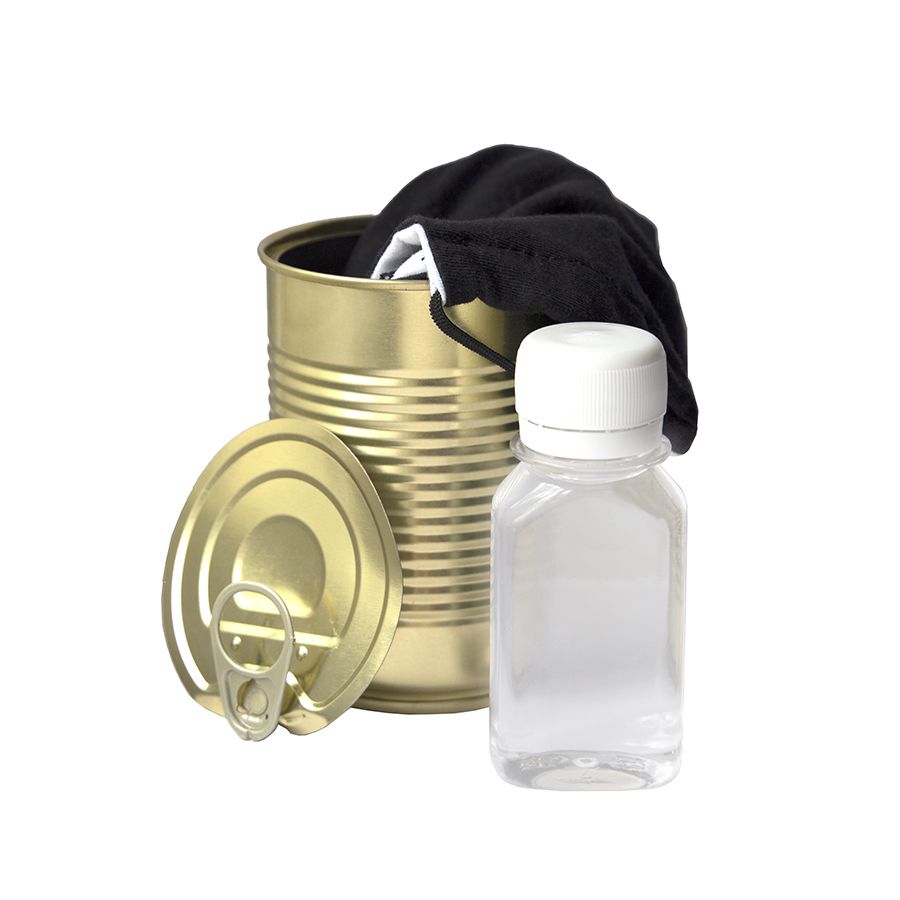Комплект СИЗ #2 (маска серая, антисептик, перчатки белые), упаковано в жестяную банку, 36602/01