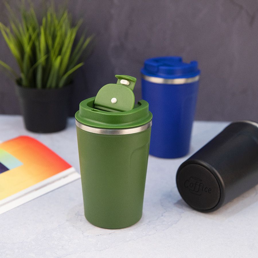 Термокружка-непроливайка с двойными стенками с откидным клапаном для питья