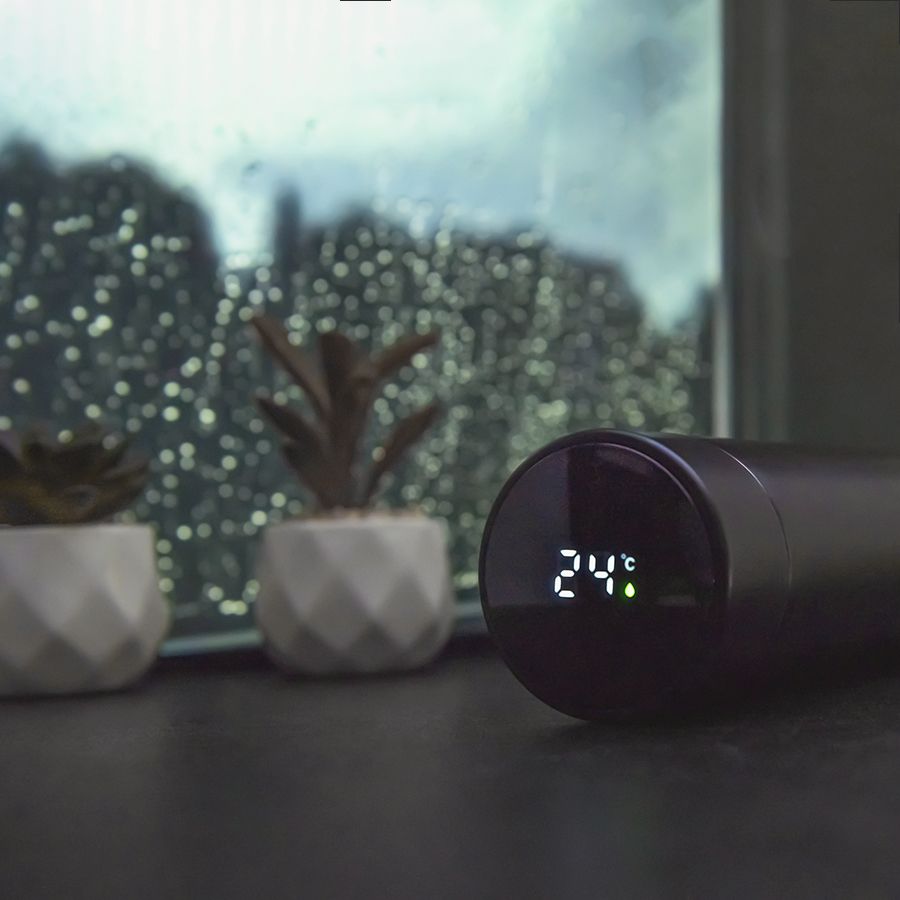 Вакуумный термос надолго сохранит температуру вашего напитка, а электронный термометр, расположенный на крышке, подскажет точную температуру его содержимого.
