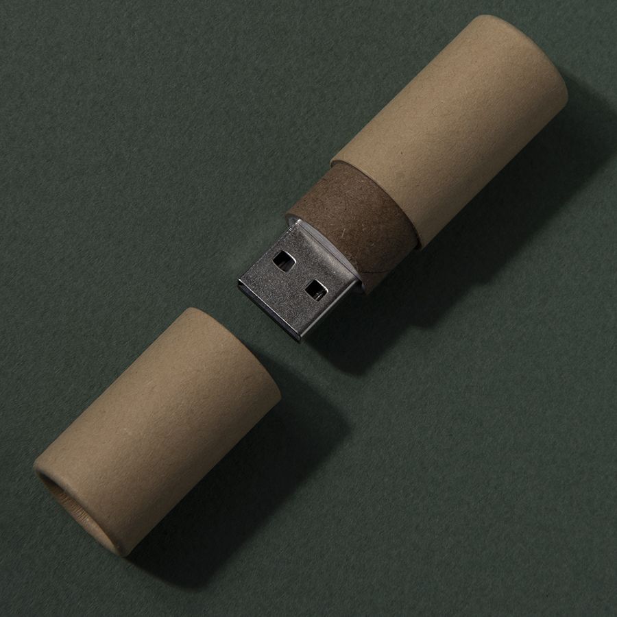 Корпус флешки выполен из рециклированной (переработанной) бумаги.