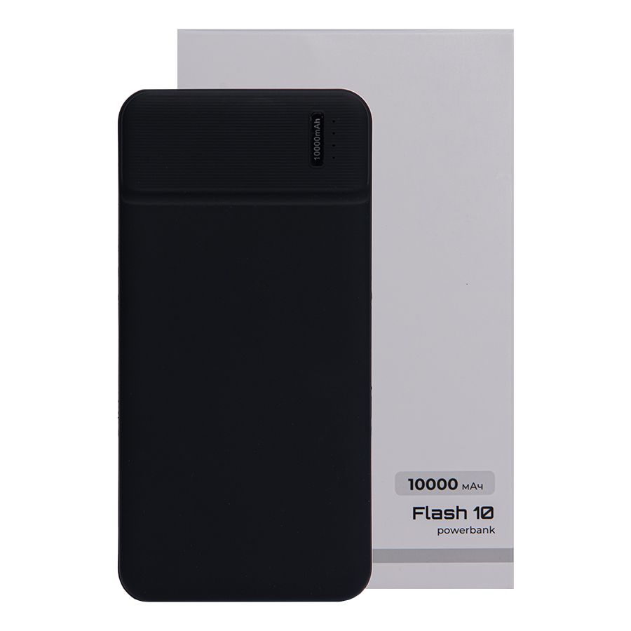 Универсальный аккумулятор Flash 10 (10000 мАч) с подсветкой и soft touch,черный,13,7х6,87х1,55мм, 37178/35