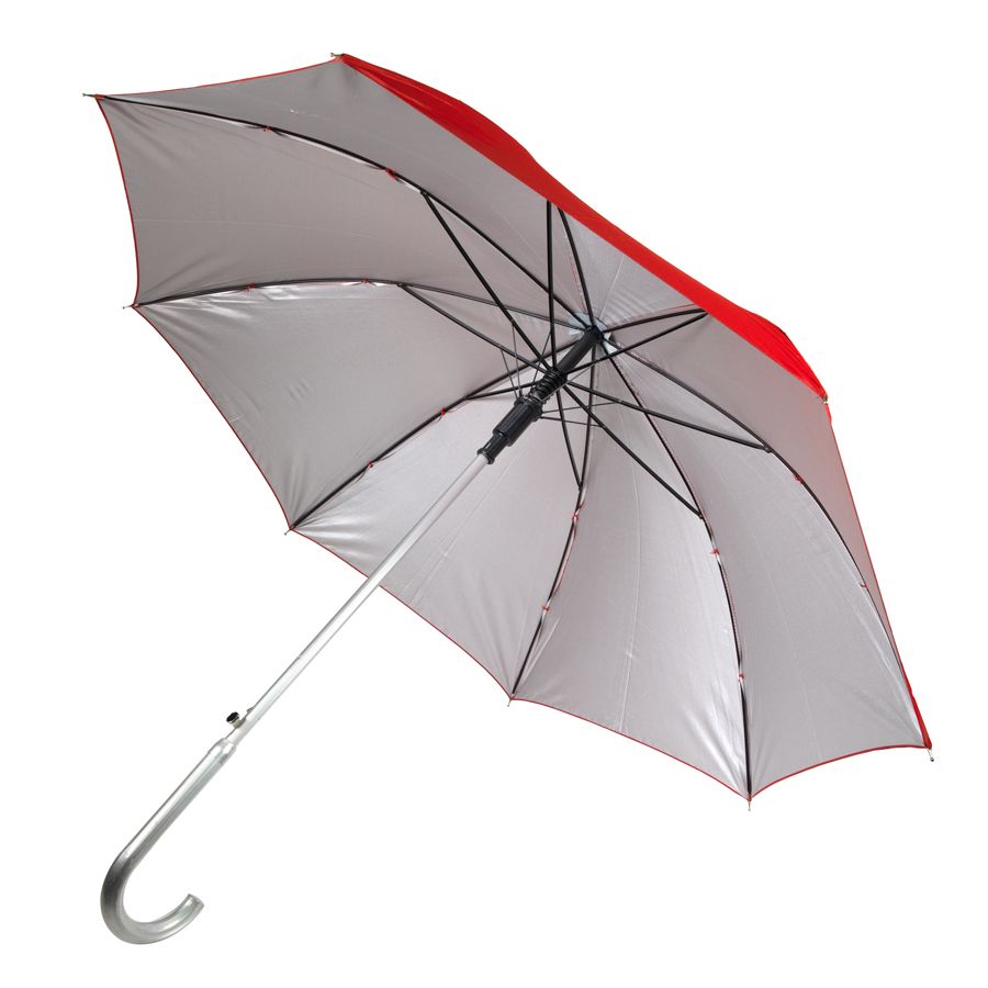 Зонт-трость с пластиковой ручкой "под алюминий" "Silver", полуавтомат; красный с серебром; D=103 cм, 8100/08