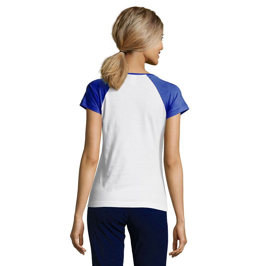 Двухцветная женская футболка MILKY является парой к мужской футболке FUNKY. Благодаря констрастирующим цветным коротким рукавам реглан она выглядит оригинально и стильно, а отсутствие боковых швов обеспечивает широкое поле для печати любого креатива.