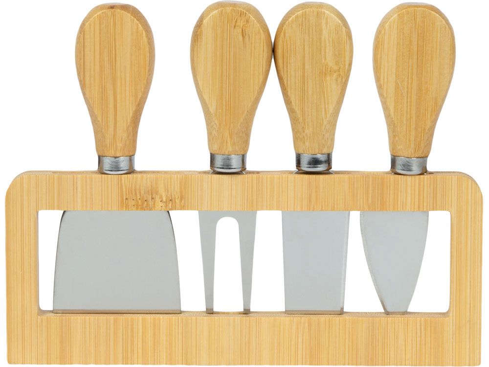 Листовидный нож или, как его еще называют, нож для пармезана, предназначен для твердых сортов сыра, которые практически невозможно порезать, скорее их нужно колоть. Нож-стамеска предназначен для очень мягких сыров, а широкая лопатка — для мягких и полутвердых. Двузубая вилка используется для сервировки, а также помогает при нарезании.