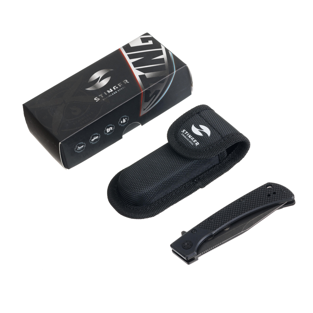 Нож складной Stinger, 102 мм, (черный), материал рукояти: нержавеющая сталь, стеклотекстолит G10, FK-H120