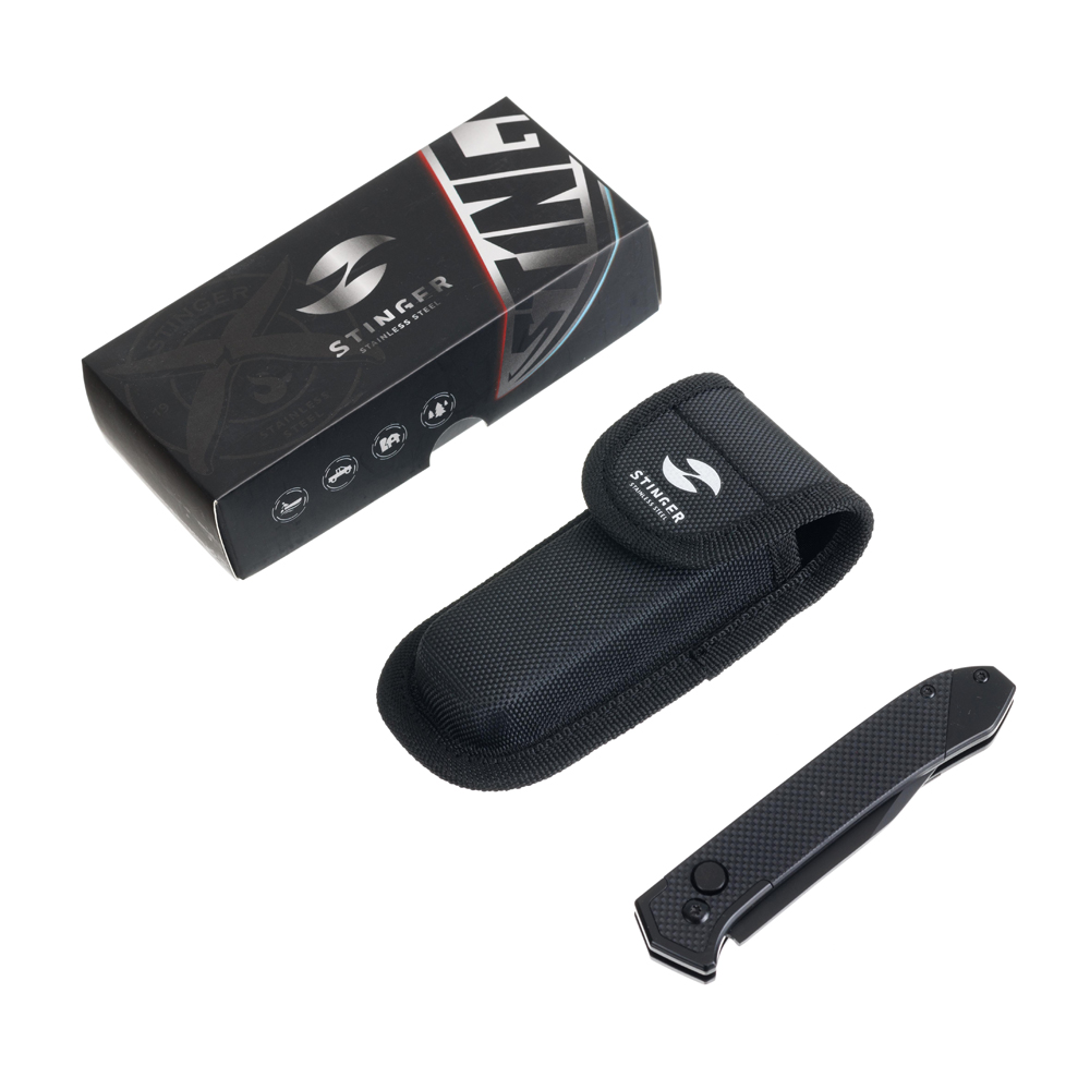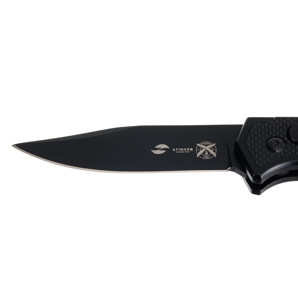 Нож складной Stinger, 115 мм, (черный), материал рукояти: нержавеющая сталь, стеклотекстолит G10, FK-H124
