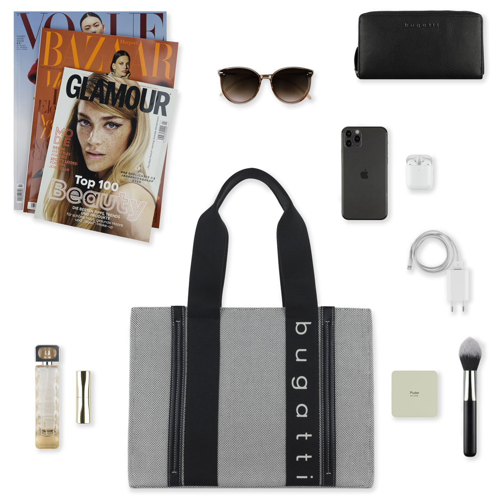 Сумка-шопер женская BUGATTI АМБРА | AMBRA, серо-черный цвет, хлопок/полиэстер, 36,5х19х27 см, 49539101