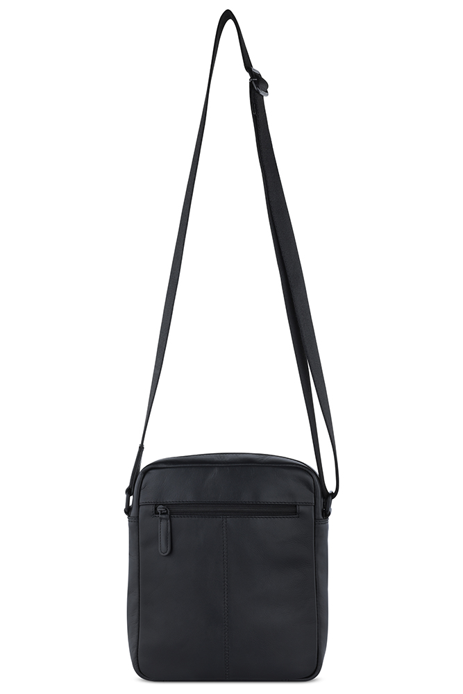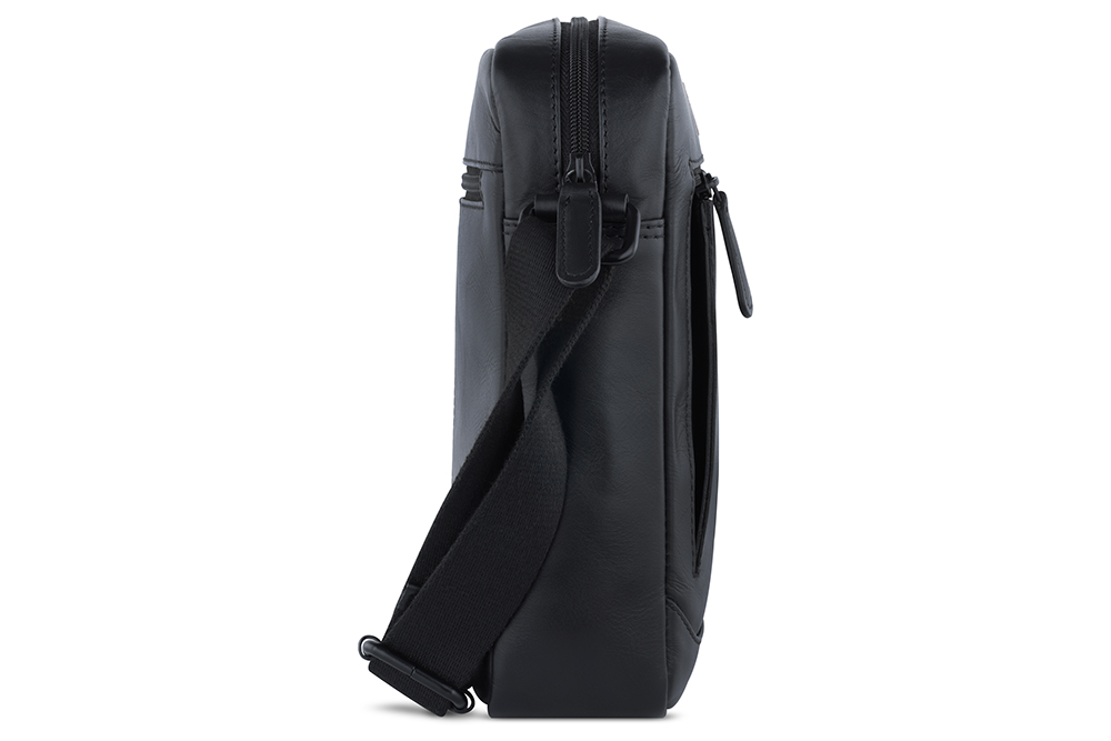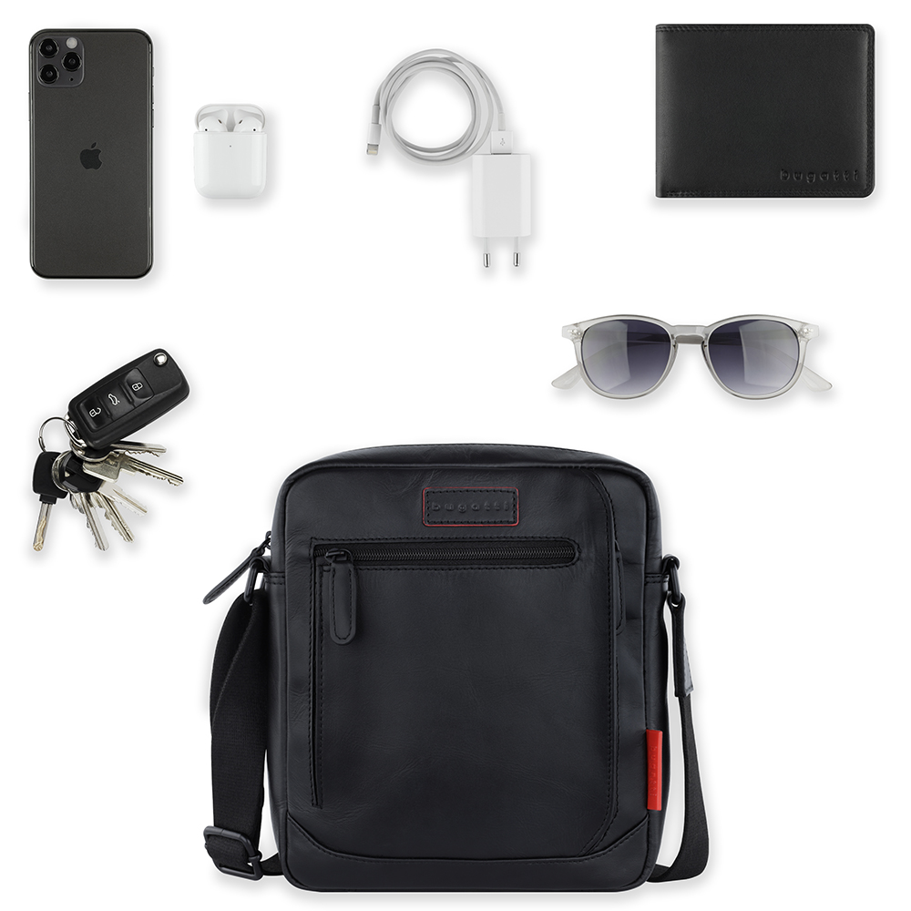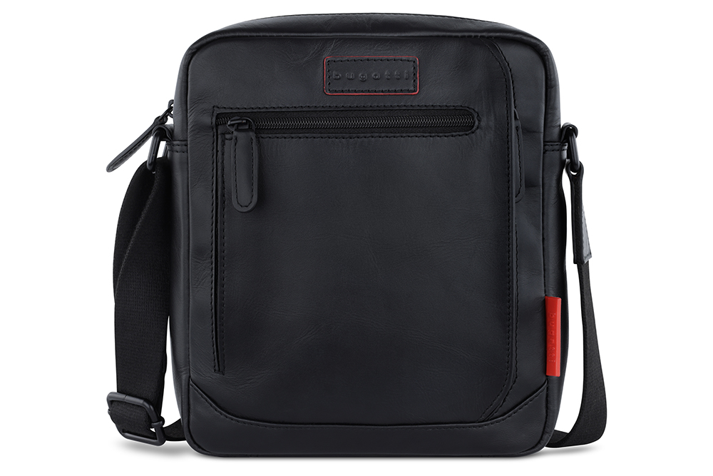 Сумка наплечная мужская BUGATTI КЛАРК | CLARK, чёрная, воловья кожа/полиэстер, 21х6,5х24 см, 3 л, 49235101