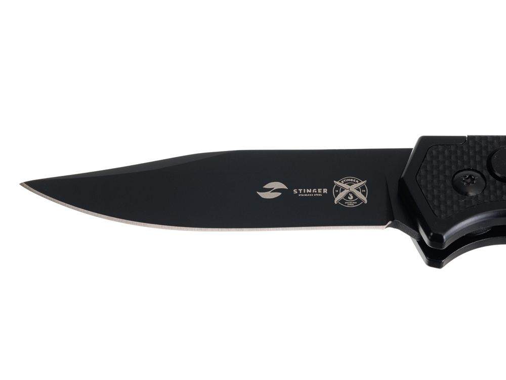 Нож складной Stinger, 115 мм, (черный), материал рукояти: нержавеющая сталь, стеклотекстолит G10, 441218