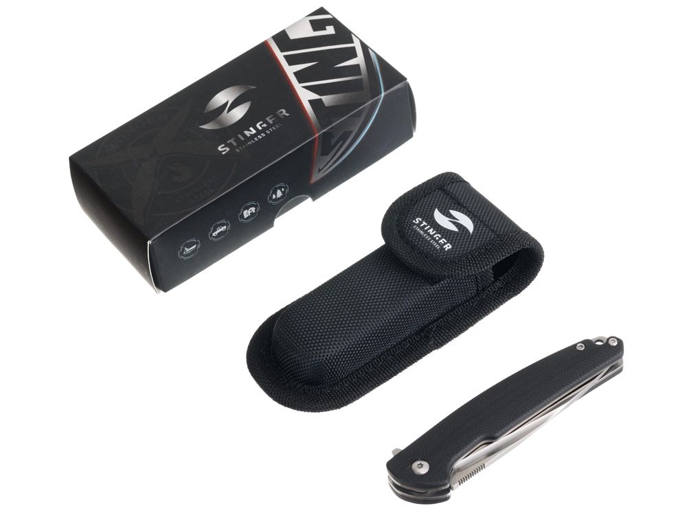 Нож складной Stinger, 106 мм, (серебристый), материал рукояти: сталь D2, стеклотекстолит G10, 441220
