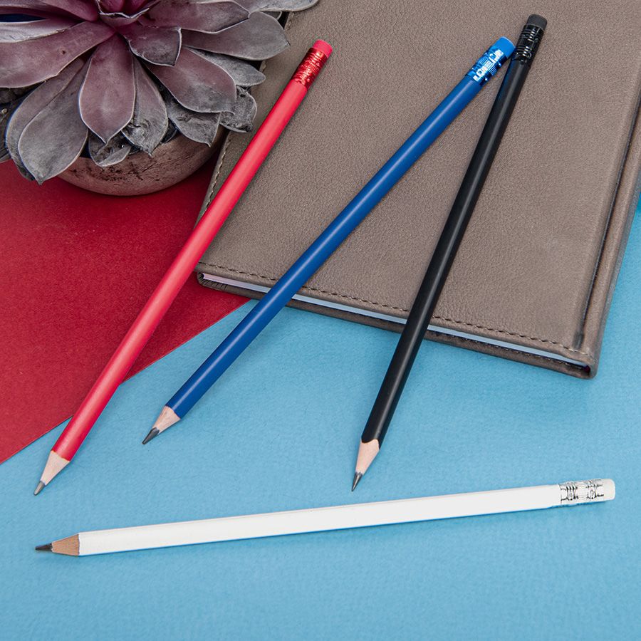 Пластиковый чернографитный карандаш с повышенными чиночными свойствами. Ластик из TPR, феррул алюминиевый. Если пластиковый карандаш ломается, на корпусе не останется острых сколов.