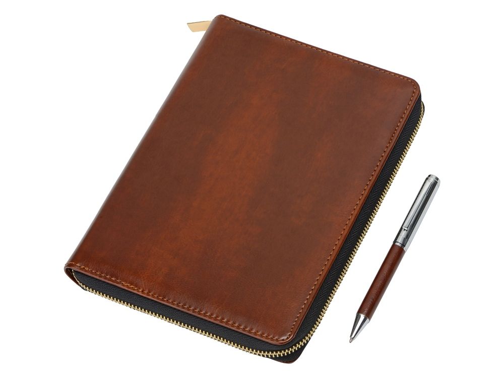 Бизнес-блокнот на молнии А5 Fabrizio с RFID защитой и ручкой, коричневый, 701409