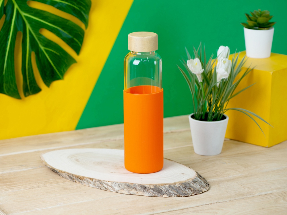 Бутылка для воды стеклянная Refine, в чехле, 550 мл, оранжевый, 887318