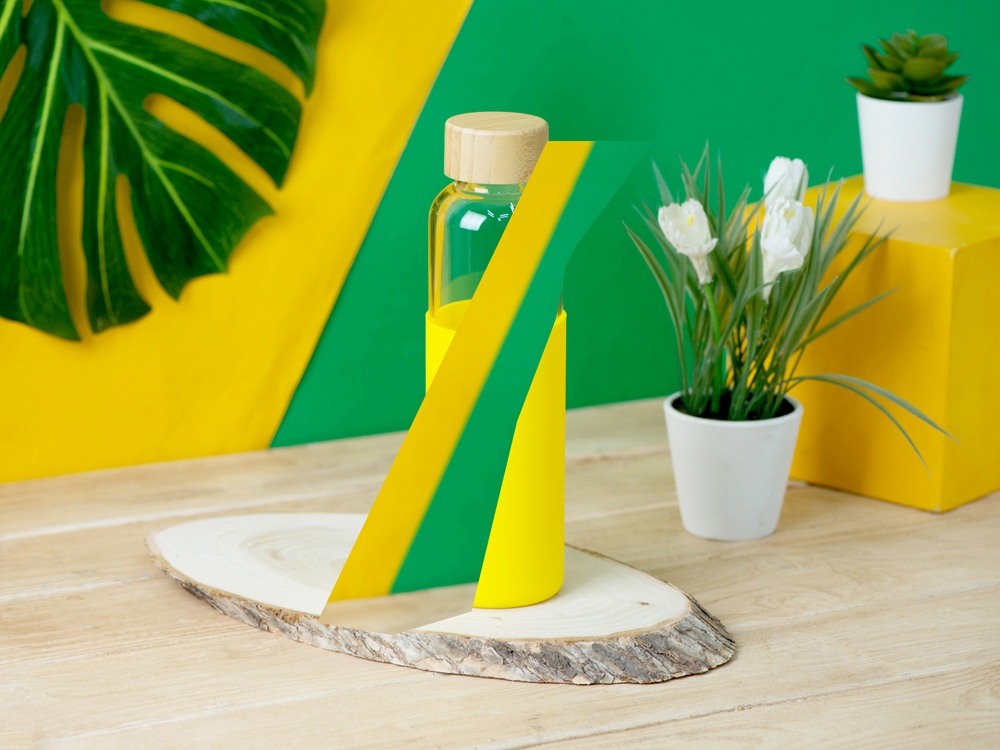 Бутылка для воды стеклянная Refine, в чехле, 550 мл, желтый, 887314