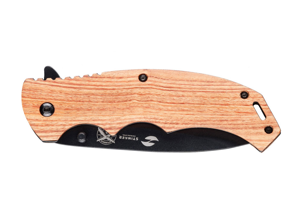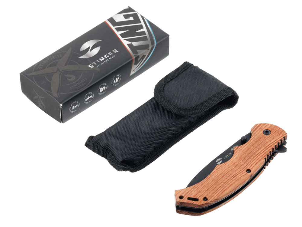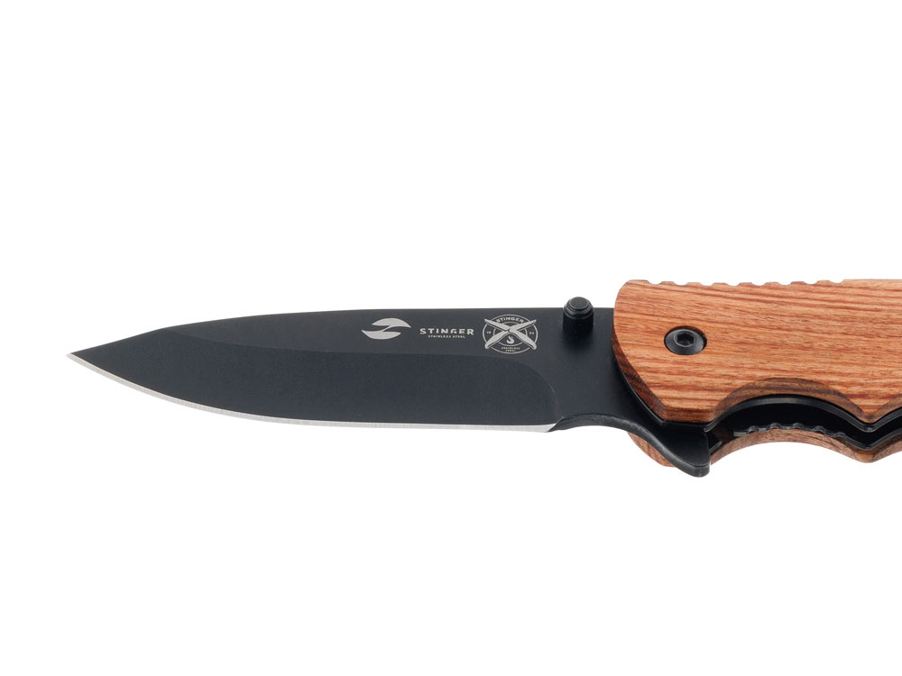 Нож складной Stinger, 120 мм, (чёрный), материал рукояти: дерево/сталь (коричневый), 441159