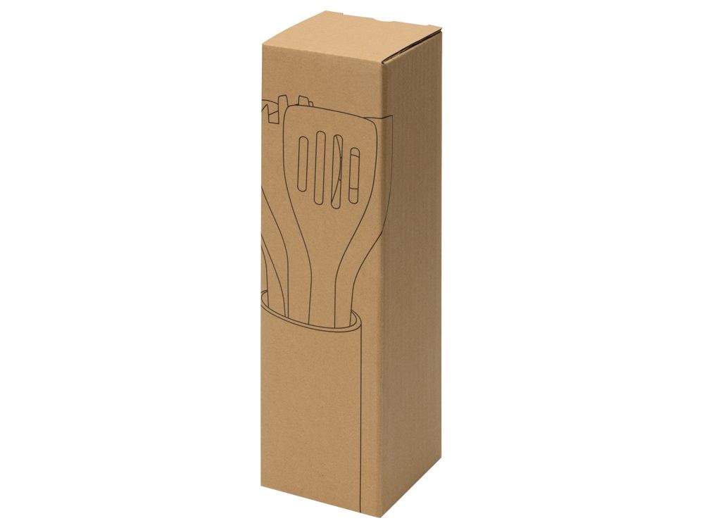 В набор входят лопатки и ложки, необходимые для приготовления различных блюд. С помощью удобной подставки из бамбука, которая идет в комплекте, принадлежности всегда будут под рукой.