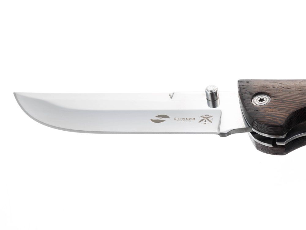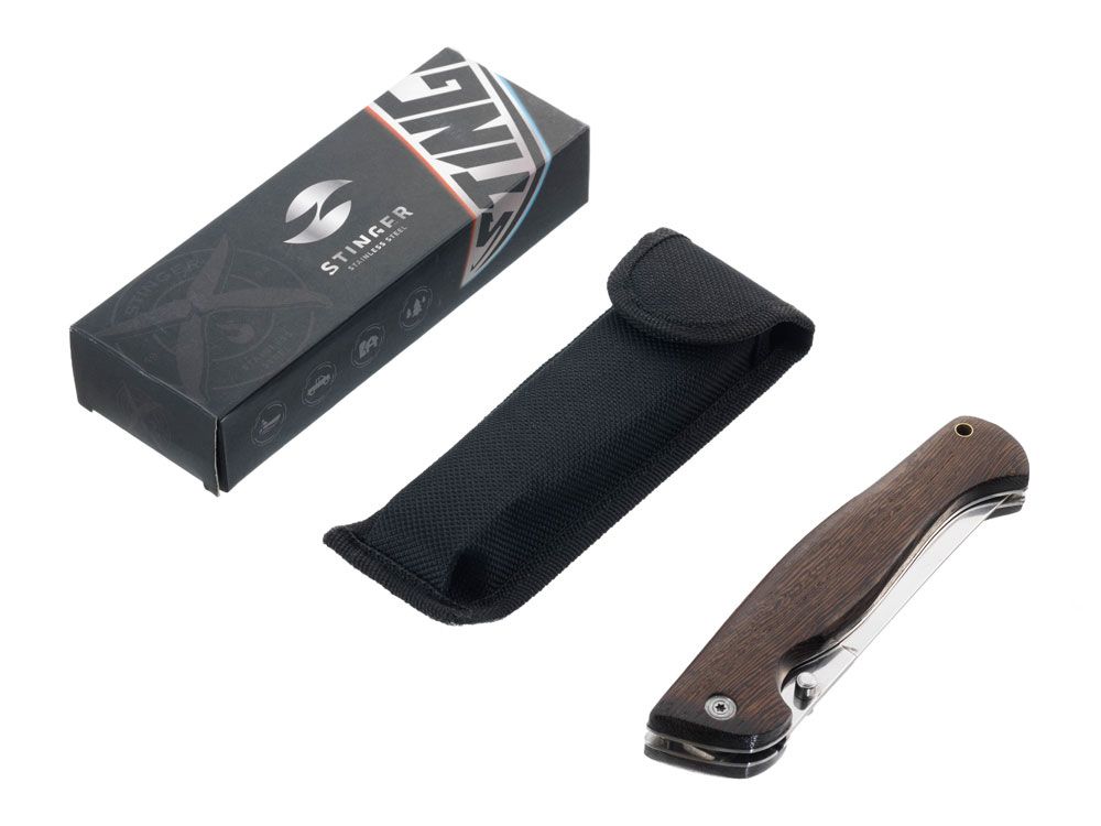 Нож складной Stinger, 112 мм (серебристый), материал рукояти: древесина венге (коричневый), 441156