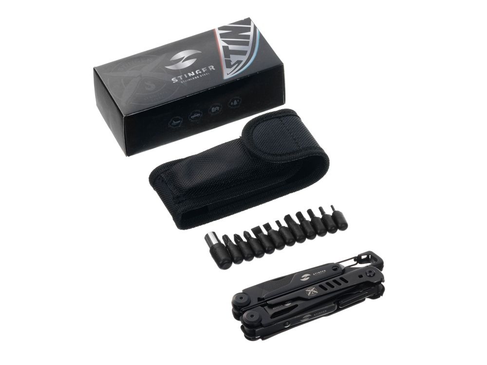 Мультитул Stinger, 115 мм, 14 функций, сталь, черный, в комплекте нейлоновый чехол, 441224