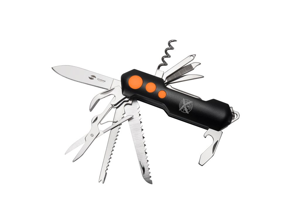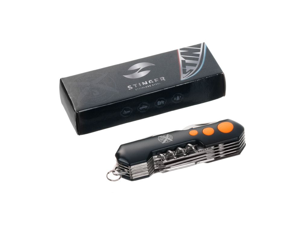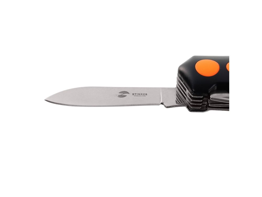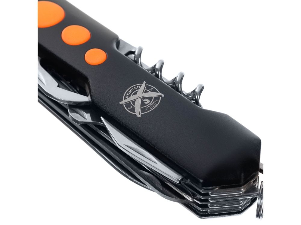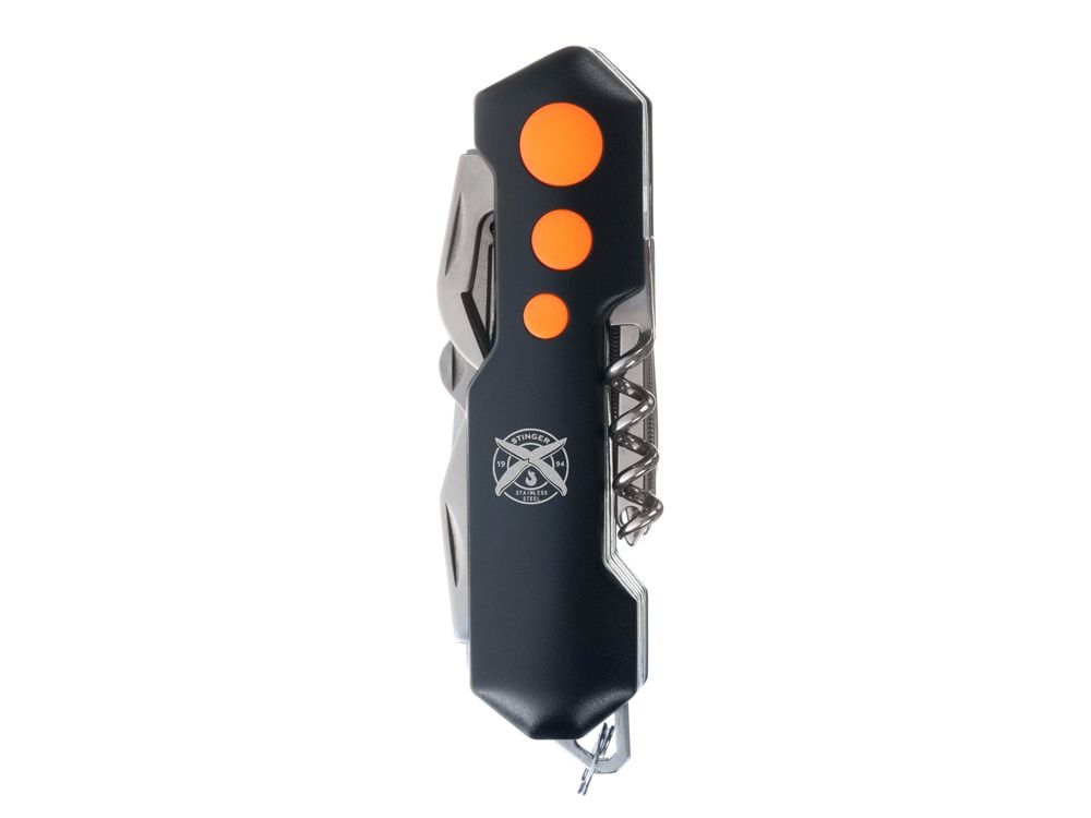 Нож перочинный Stinger, 96 мм, 15 функций, материал рукояти: алюминий, PP (черный/оранжевый), 441231