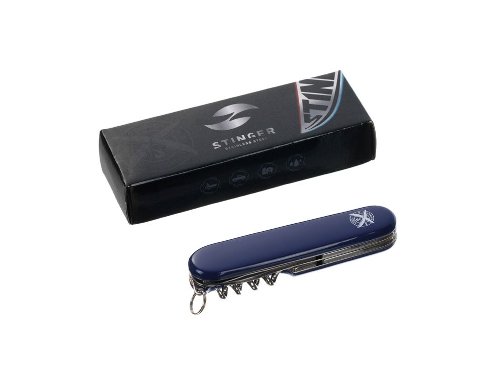 Нож перочинный Stinger, 90 мм, 10 функций, материал рукояти: АБС-пластик (синий), 441235