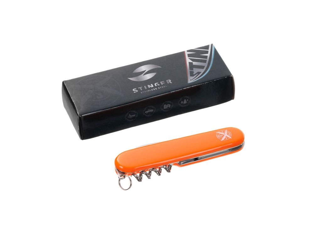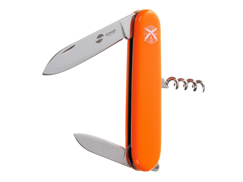 Нож перочинный Stinger, 90 мм, 4 функции, материал рукояти: АБС-пластик (оранжевый), 441238