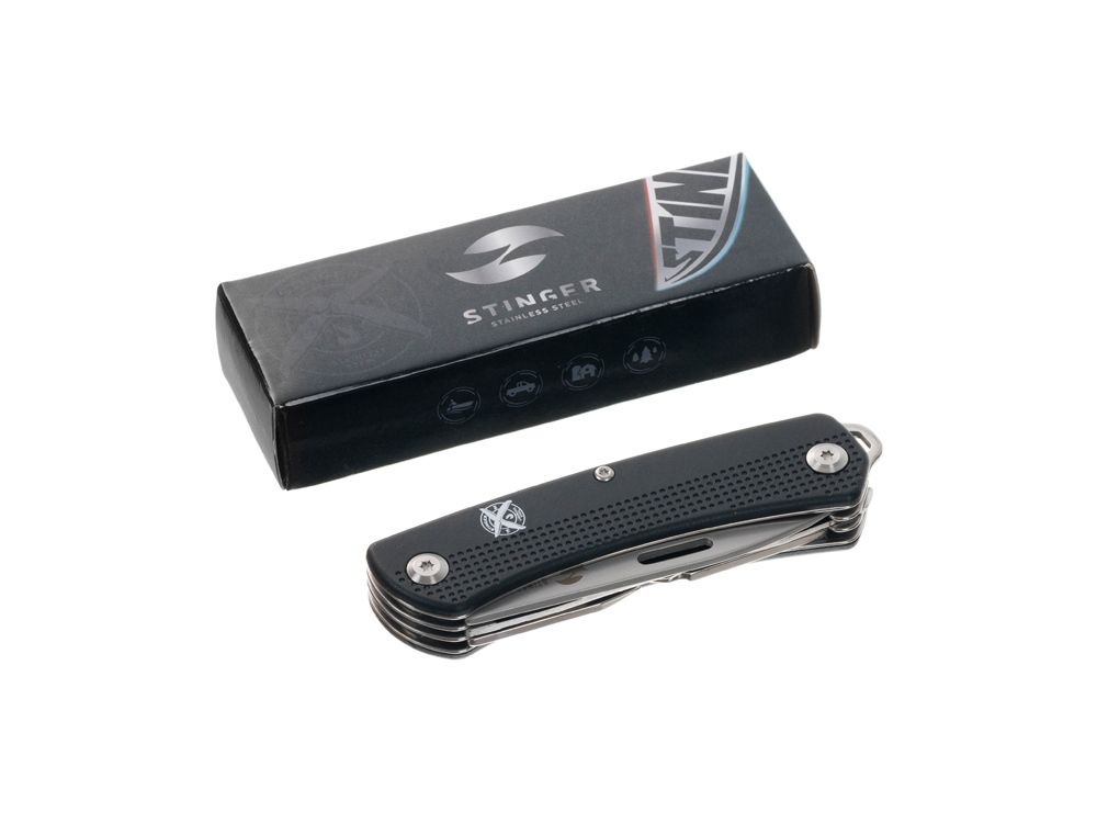 Нож перочинный Stinger, 103 мм, 10 функций, материал рукояти: АБС-пластик (черный), 441243