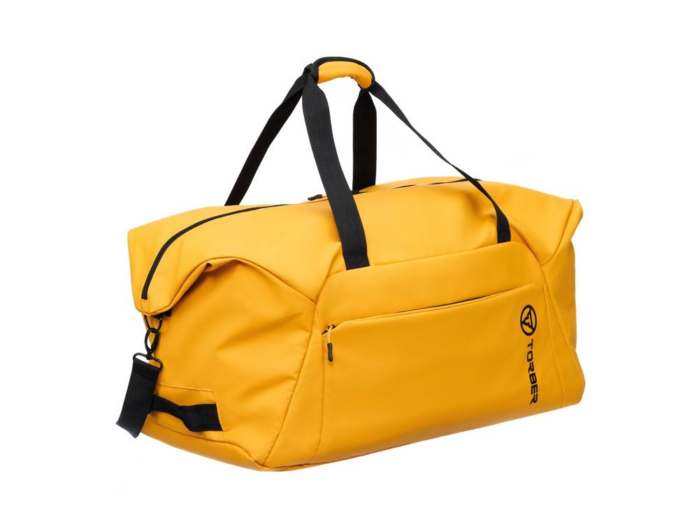 Сумка дорожная TORBER РИТМ, желтая, полиэстер 900D с PU покрытием, 65 х 37 х 34 см, 73540
