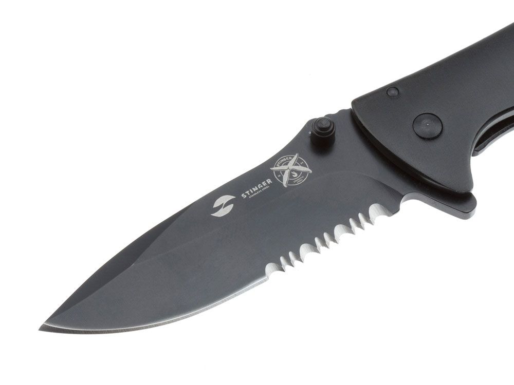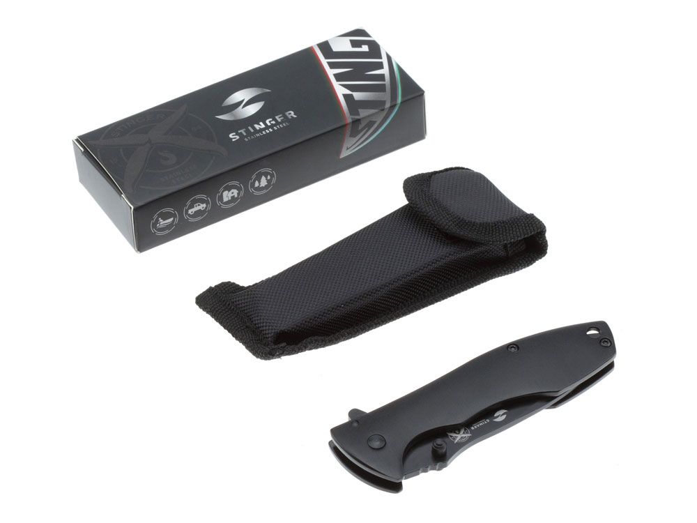 Нож складной Stinger, 80 мм, (чёрный), материал рукояти: сталь/алюминий (чёрный), 441170