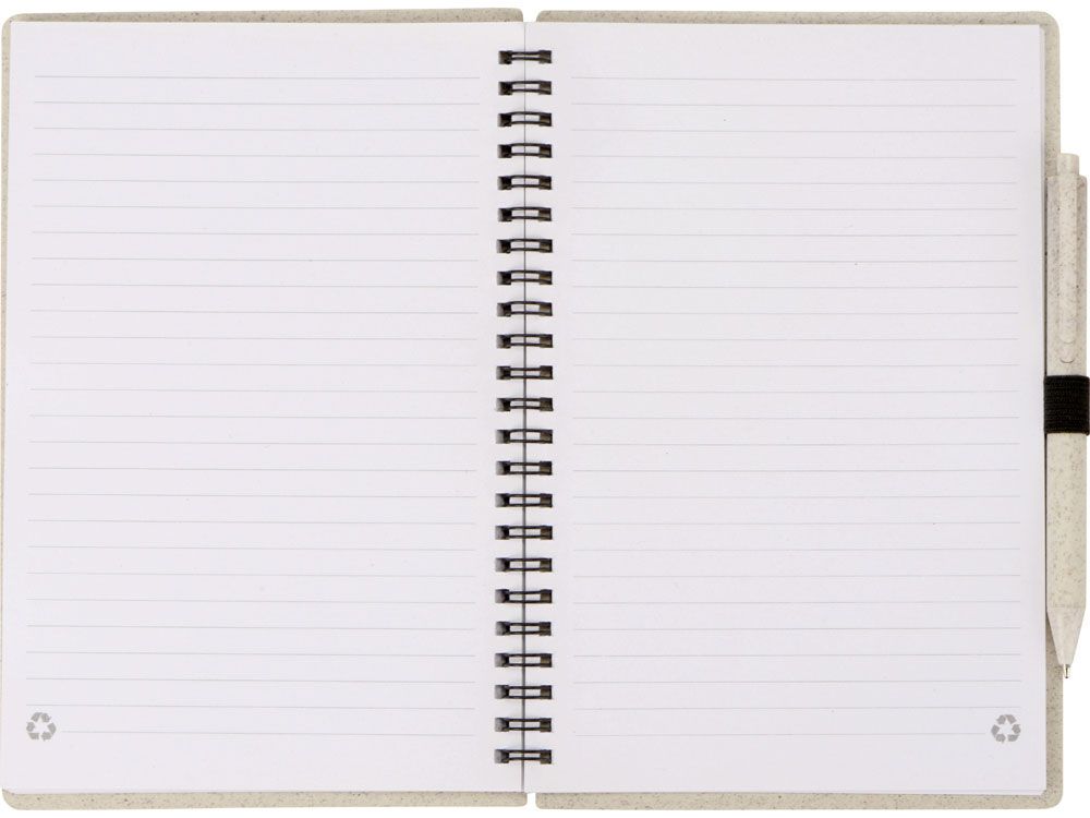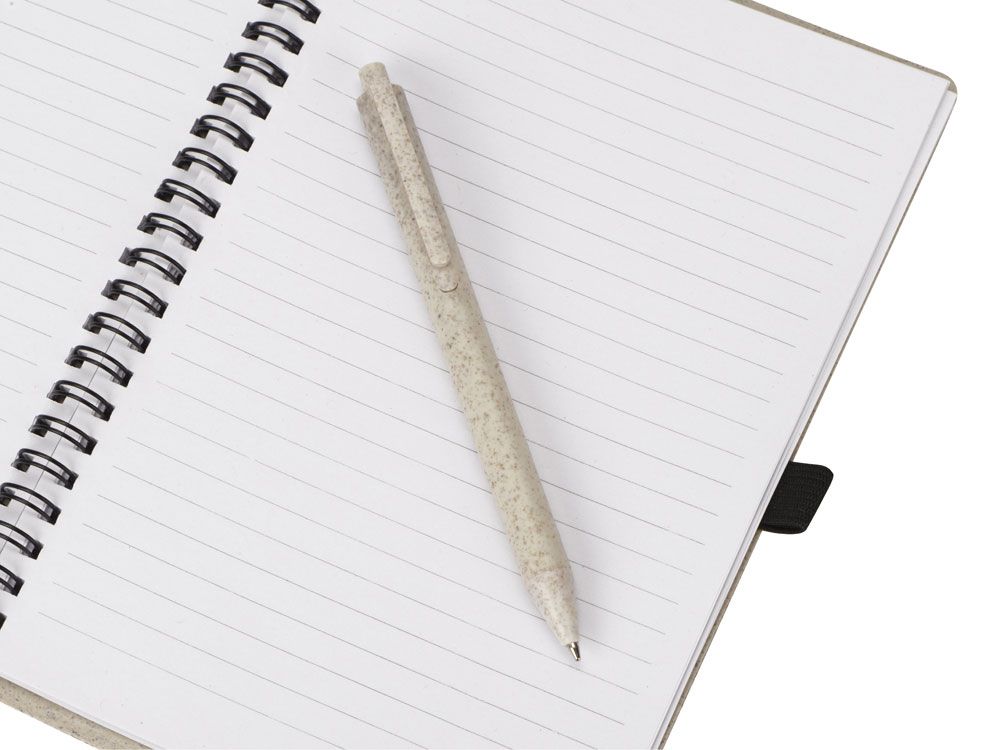 блокнот- пластик, переработанная бумага, металл, ручка- пшеничное волокно, пластик |